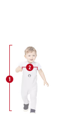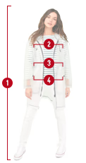 | Størrelse | 1Højde | 2Brystmål | 3Taljemål | 4Hoftemål |