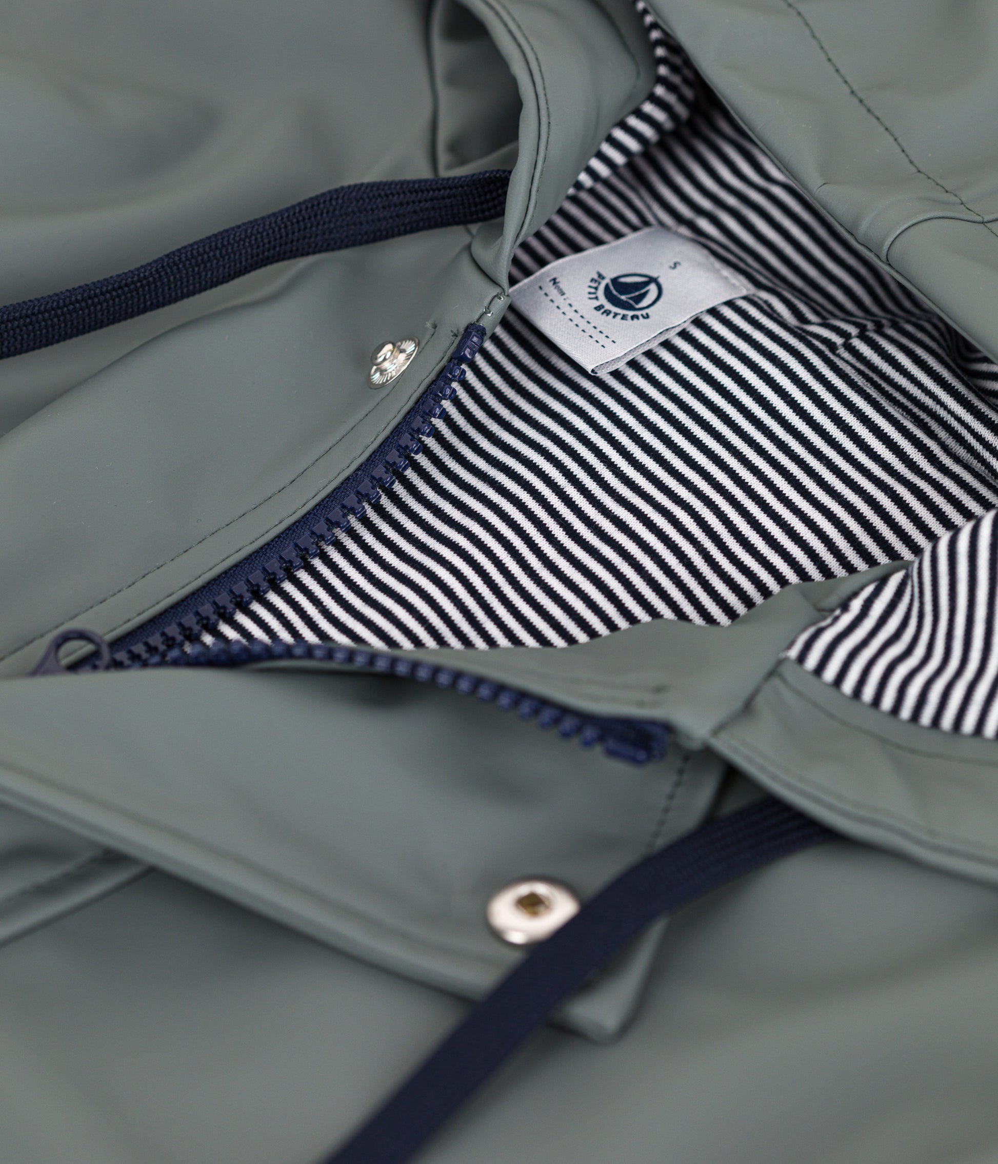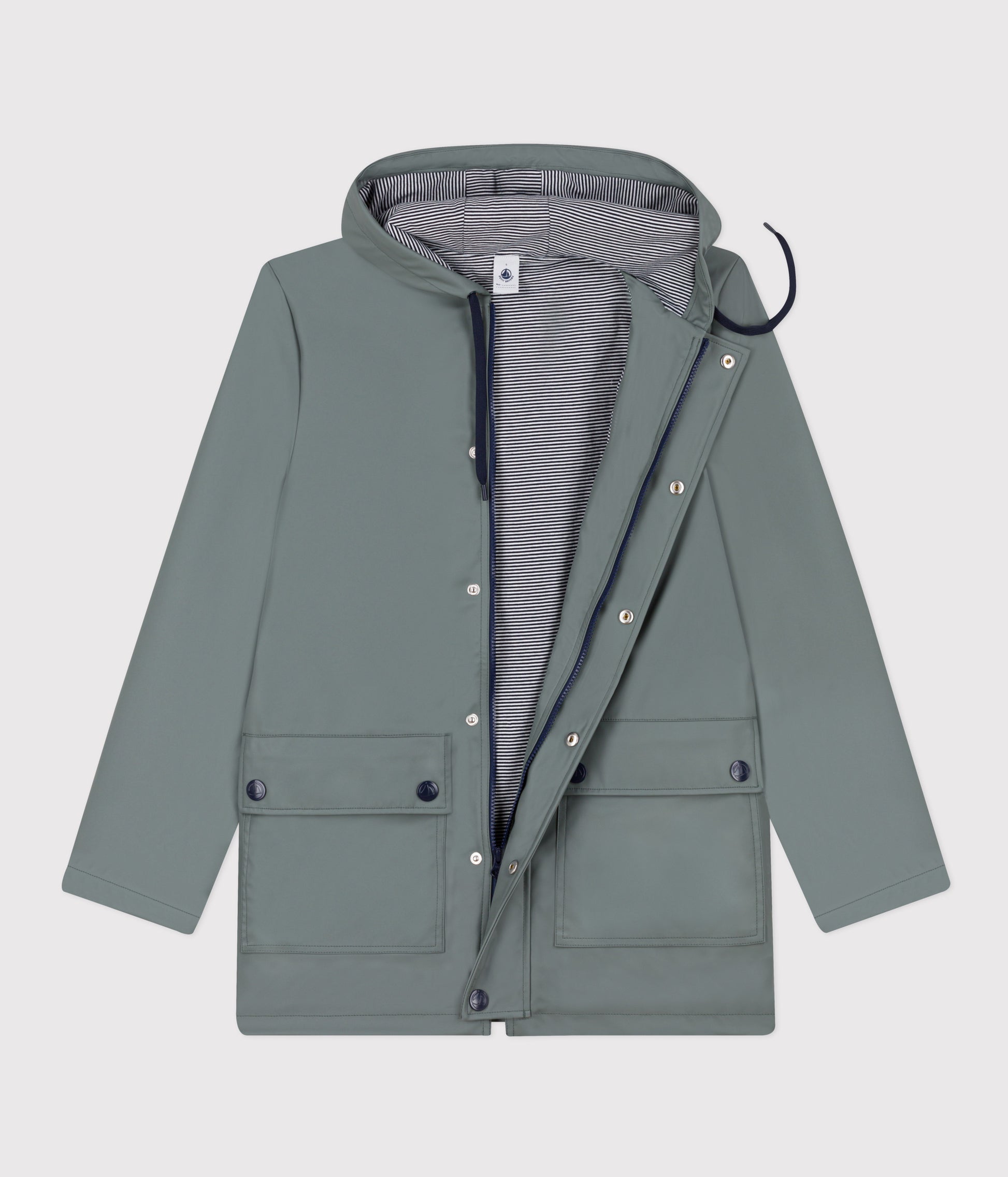 Den ikoniske Petit Bateau-regnjakke fås nu i et genanvendt materiale med en økologisk bomuldsforing.