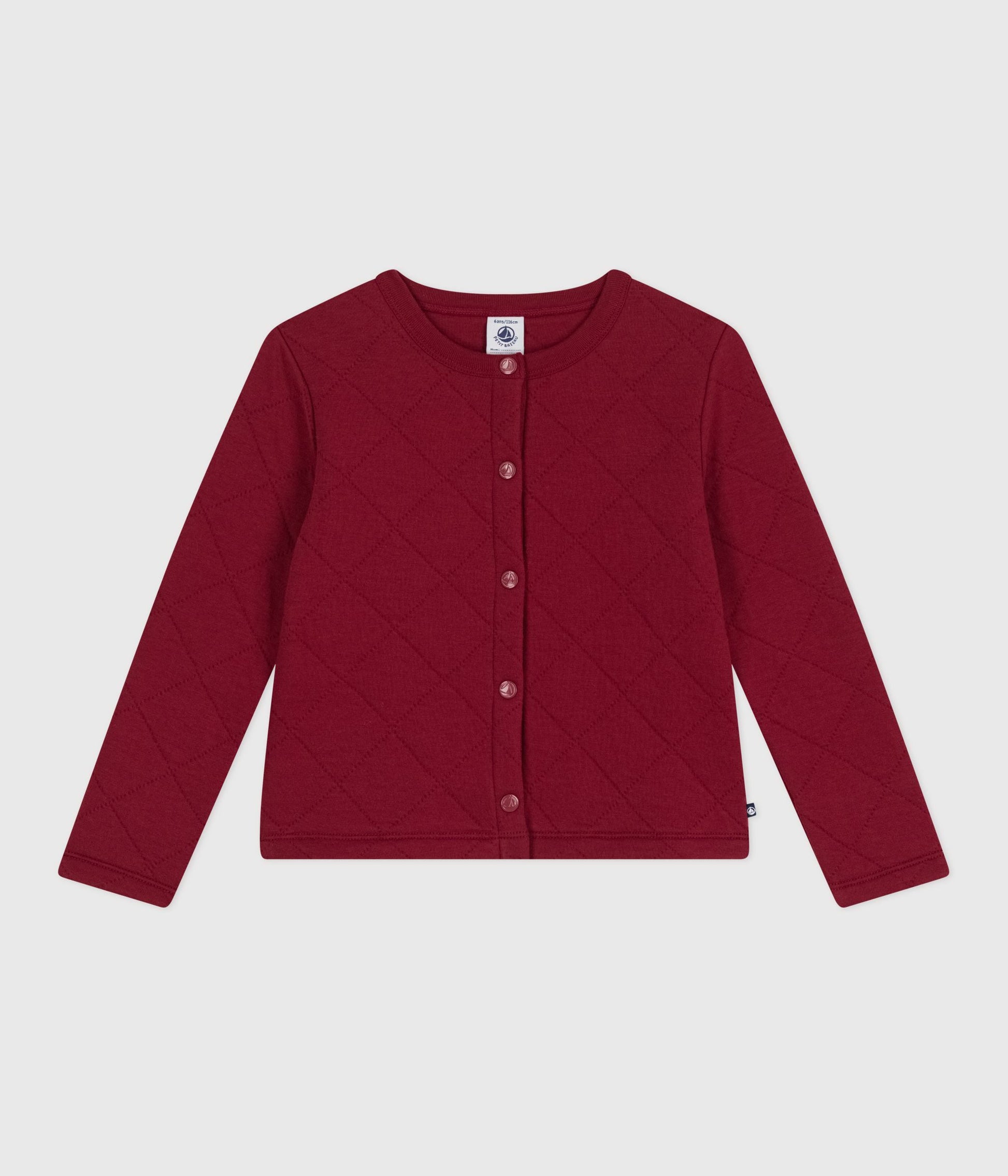 Girls' cardigan in quilted tube knit, a soft, snuggly fabric. Straight cut. Fastens at the front with logo-stamped poppers. Rounded neckline. Item: 75%Cotton 25%Polyester Ref. No. A0DXM01050