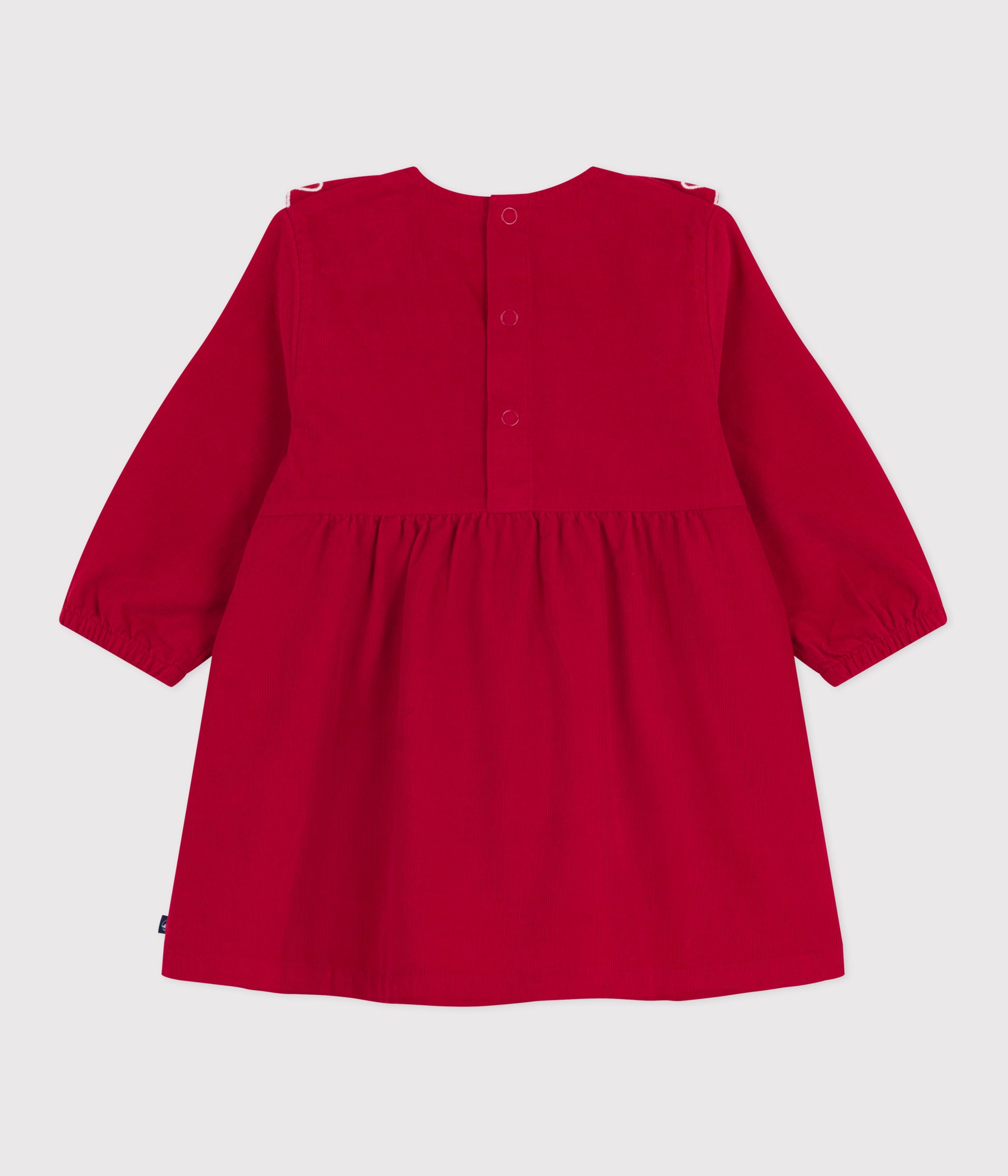 Girls' dress in finely ribbed corduroy, comfortable, on-trend, and ideal for the winter. We love the heart embroidery on the ruffles of this dress! Loosely cut. The buttoned fastening at the back makes dressing so much easier. Item: 100%Cotton Ref. No. A0DZS01010