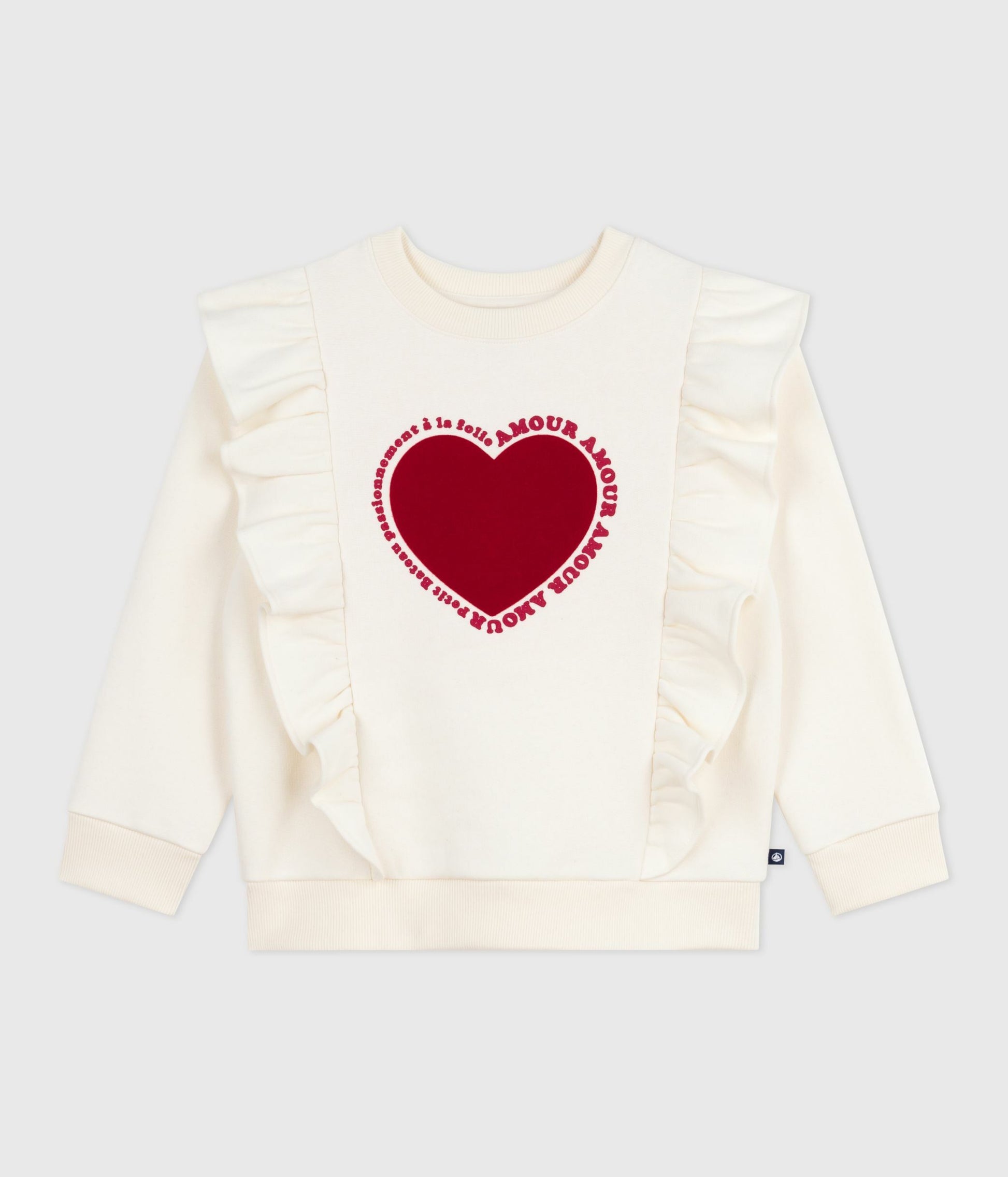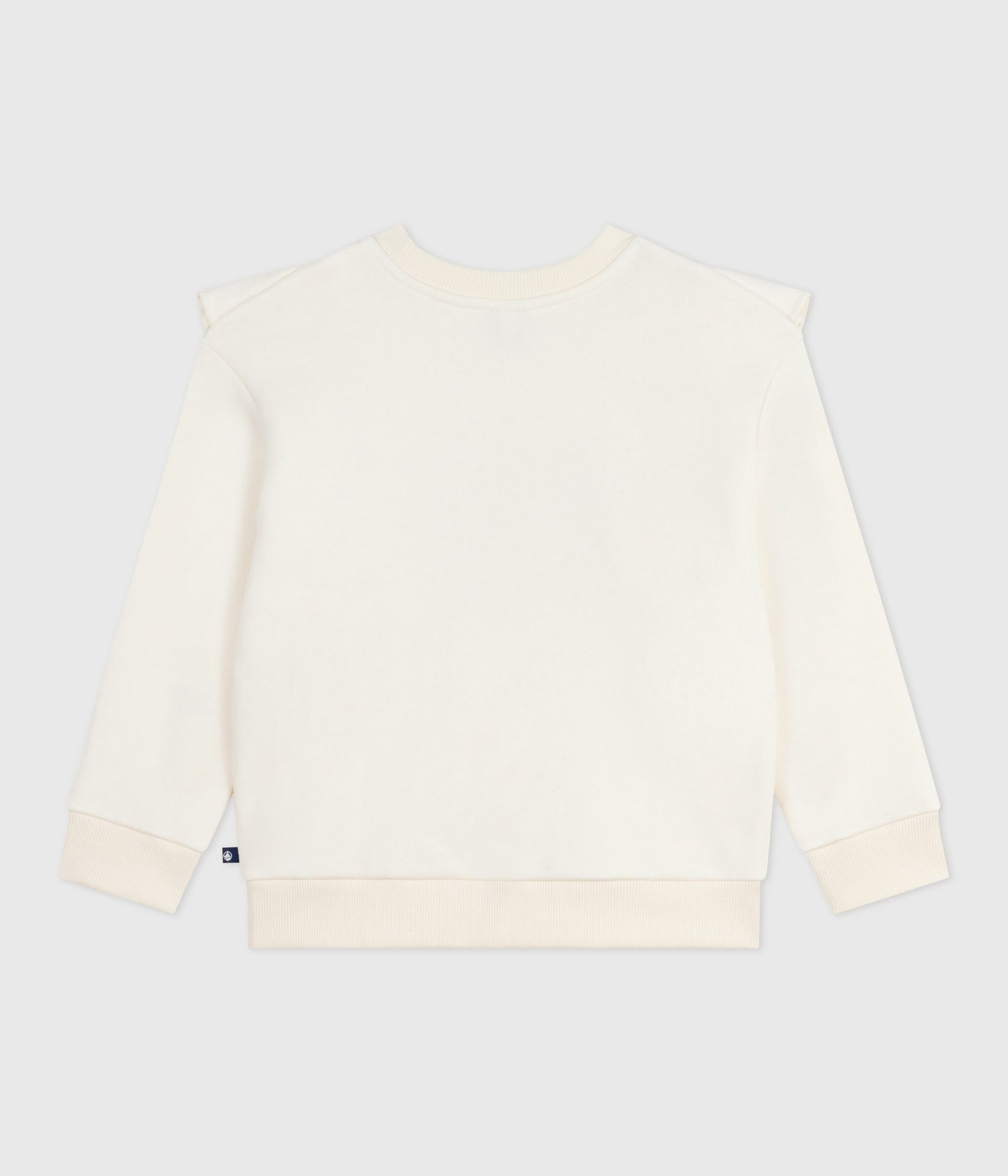 Girls' sweatshirt made of soft, comfy fleece. Gathered ruffles down the front, from the shoulders to the bottom of the body. Rounded neckline. Ribbing at the neck, on the cuffs and the bottom of the body. Item: 100%Cotton Added fabric 93%Cotton 7%Elastane Ref. No. A0E2001050