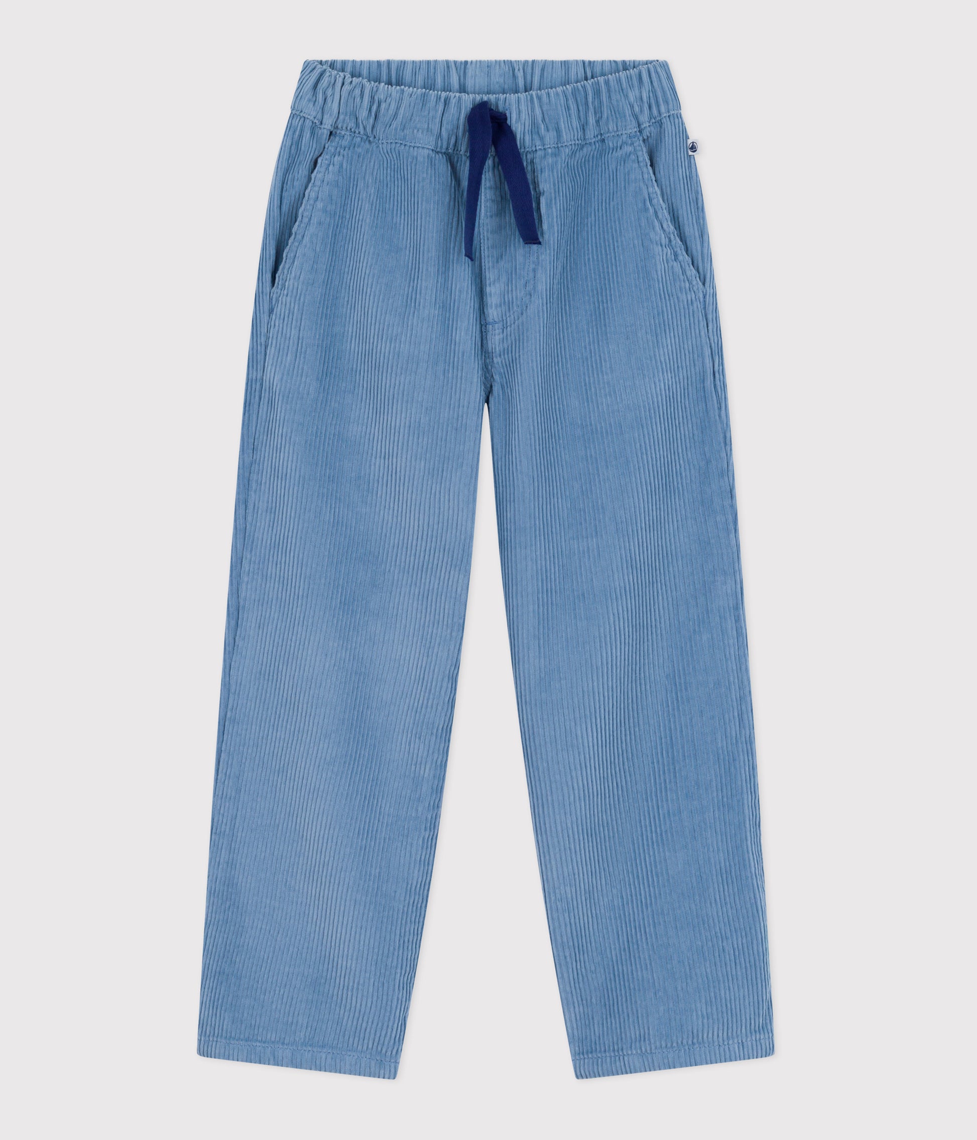 Boys' chunky rib corduroy trousers, comfortable, on-trend, and ideal for winter. Elasticated waist with a drawstring. Slanting side pockets. Item: 100%Cotton Ref. No. A0E3X01050