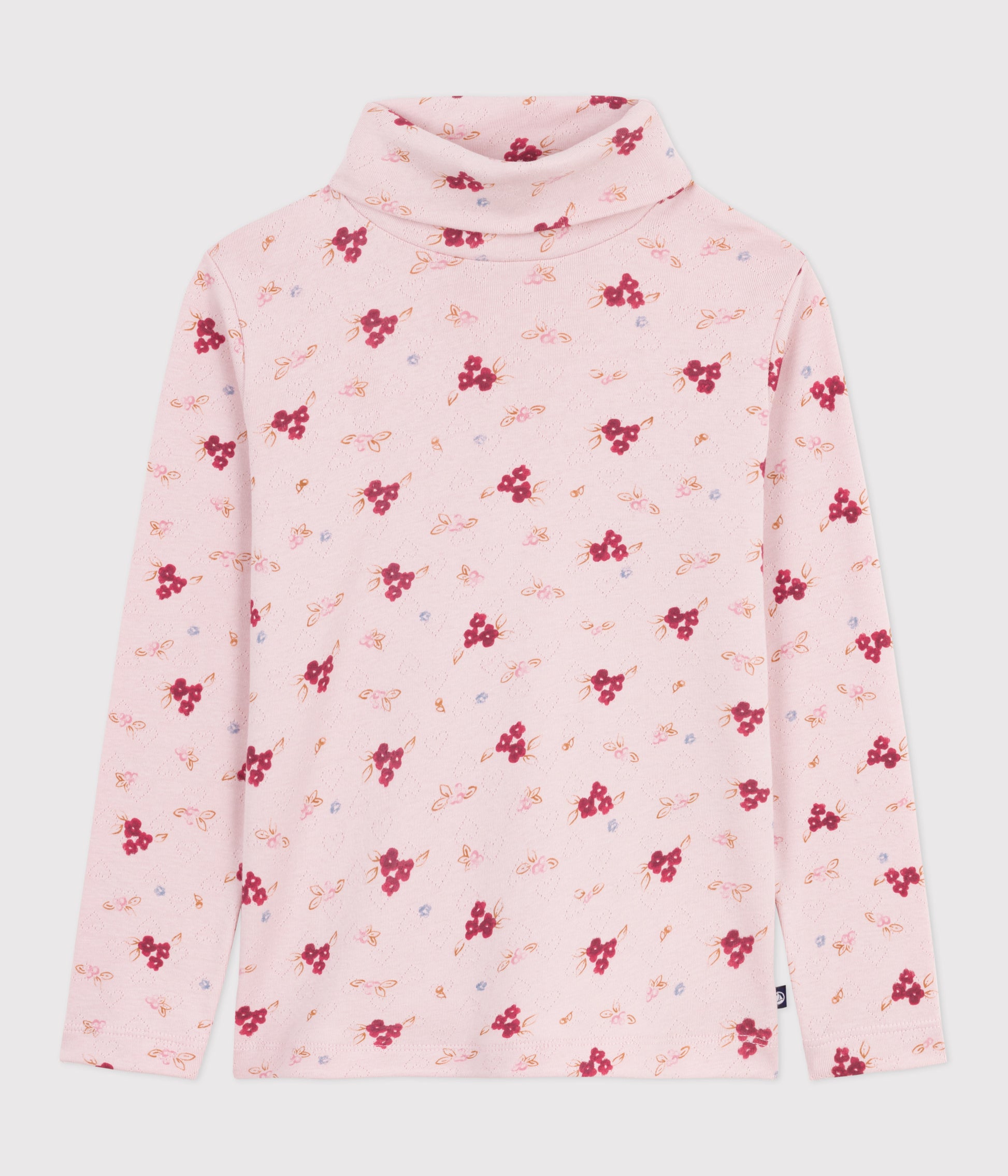 Girls' rollneck top made in floral-print openwork cotton, a soft, lightweight and super-comfy fabric. Straight cut. The rollneck top, so practical and nice to wear, is a must-have in any child's wardrobe. They can wear it under a dress or a cardigan for an on-trend look. Item: 100%Cotton Ref. No. A0E6O13050