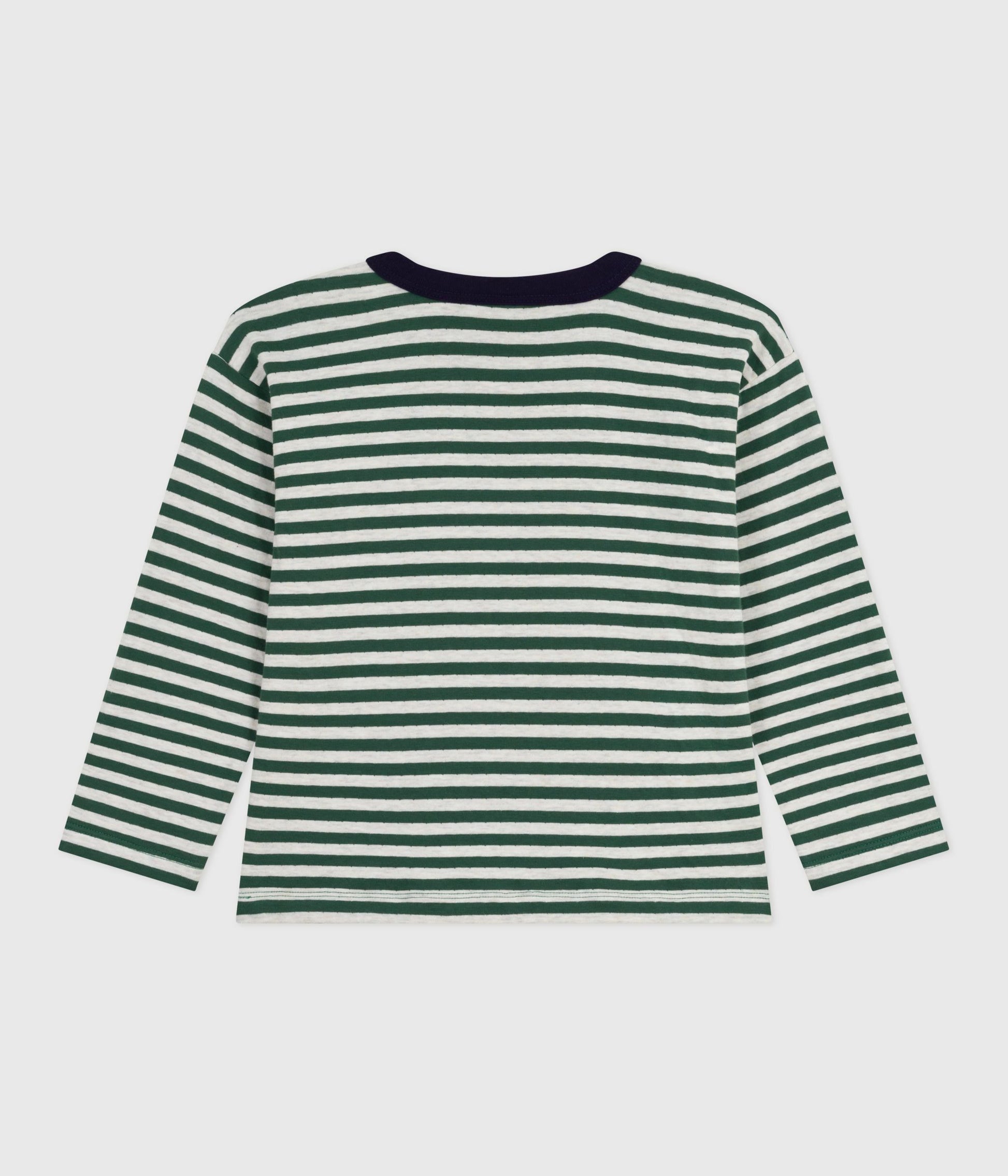 Boys' T-shirt in stripy tube knit, a soft, comfy fabric. Straight cut, with an attractive curved bottom hem. A must-have T-shirt in any boy's wardrobe. Available in three colours. Item: 100%Cotton Ref. No. A0E8Y03050
