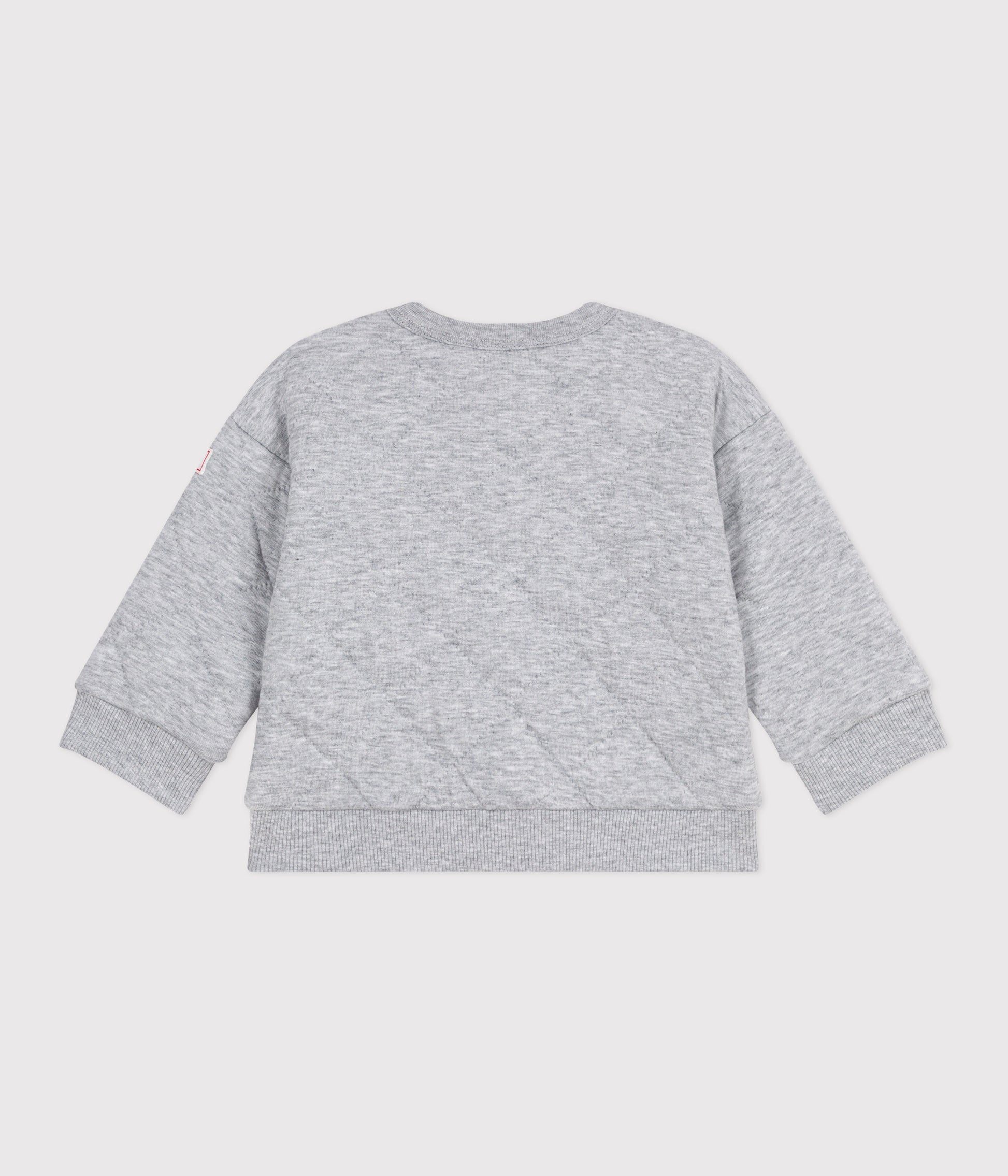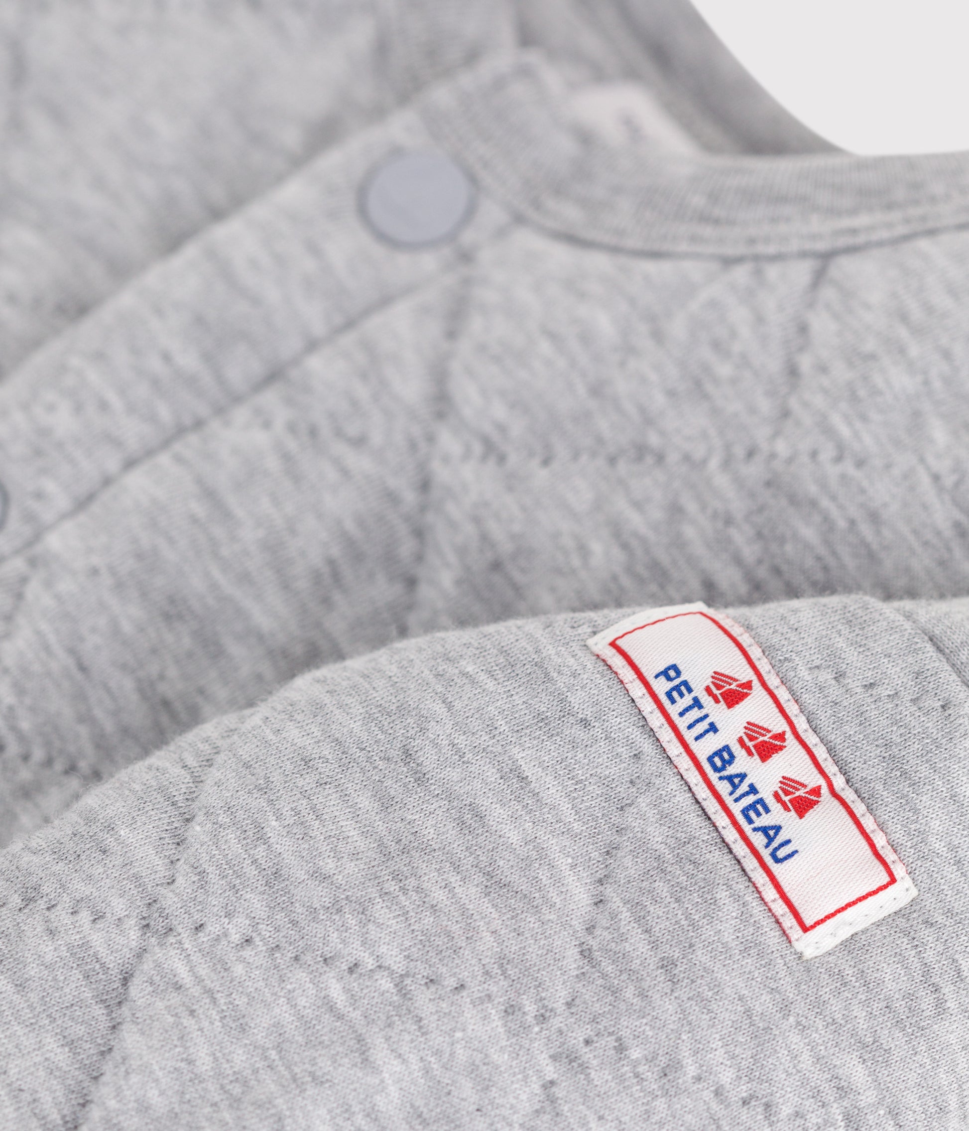 Boys' cardigan in quilted tube knit, a comfy snuggly material ideal to wear in the winter. Tube knit is one of Petit Bateau's iconic fabrics: two extremely soft knits linked together for a uniquely comfy, snuggly feel. Fastened at the front with branded poppers. Rounded neckline. Item: 75%Cotton 25%Polyester Added fabric 93%Cotton 7%Elastane Ref. A0EA701010