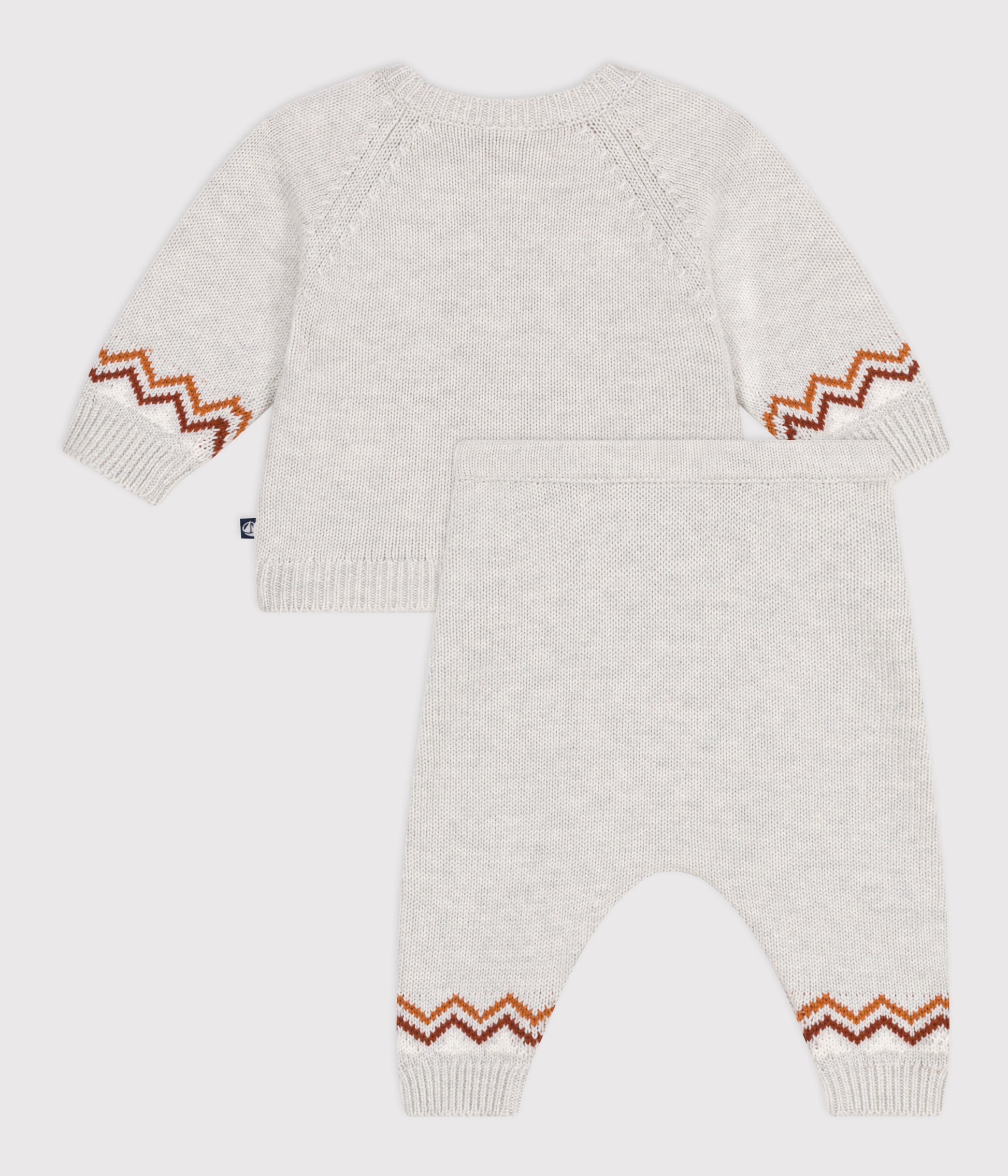 Unisex knitted cardigan and trousers made from a knitted fabric containing wool, a really comfy material for the winter. Gorgeous Jacquard features on the front of the cardigan and on the sleeves and ankles. The cross-over buttoned fastening at the front makes dressing much easier. The elasticated waist is more comfortable. We have knitted this garment using high-quality wool that respects animal welfare. Item: 55%Wool 45%Cotton Ref. A0ECC01000