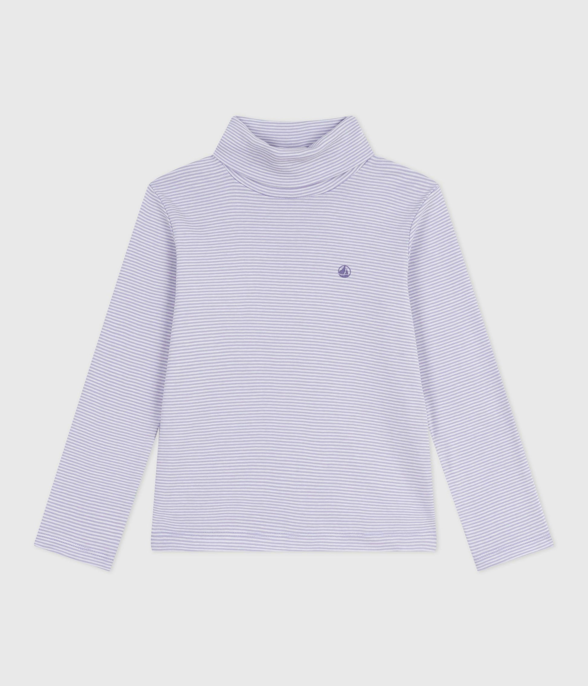 Girls' rollneck top in pinstriped 1X1 rib knit, a stretchy, comfortable fabric. Straight cut. The rollneck top, so practical and nice to wear, is a must-have in any child's wardrobe. They can wear it under a dress or a cardigan for an on-trend look. Item: 100%Cotton Ref. No. A0EF713050