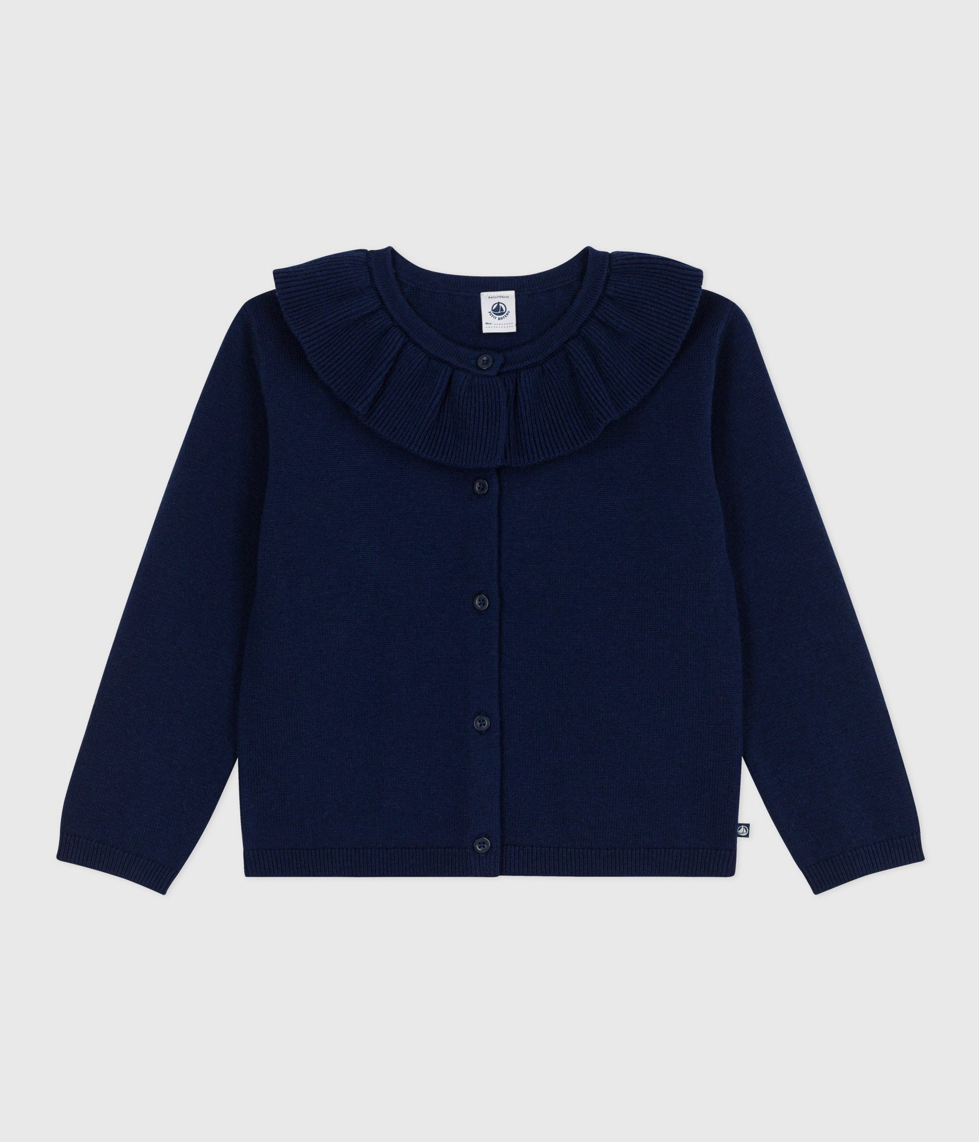 Girls' wool knit cardigan, so soft and warm for winter. Straight cut. Ruff collar. Buttoned fastening on the front. Item: 55%Wool 45%Cotton Ref. No. A0EGK01050