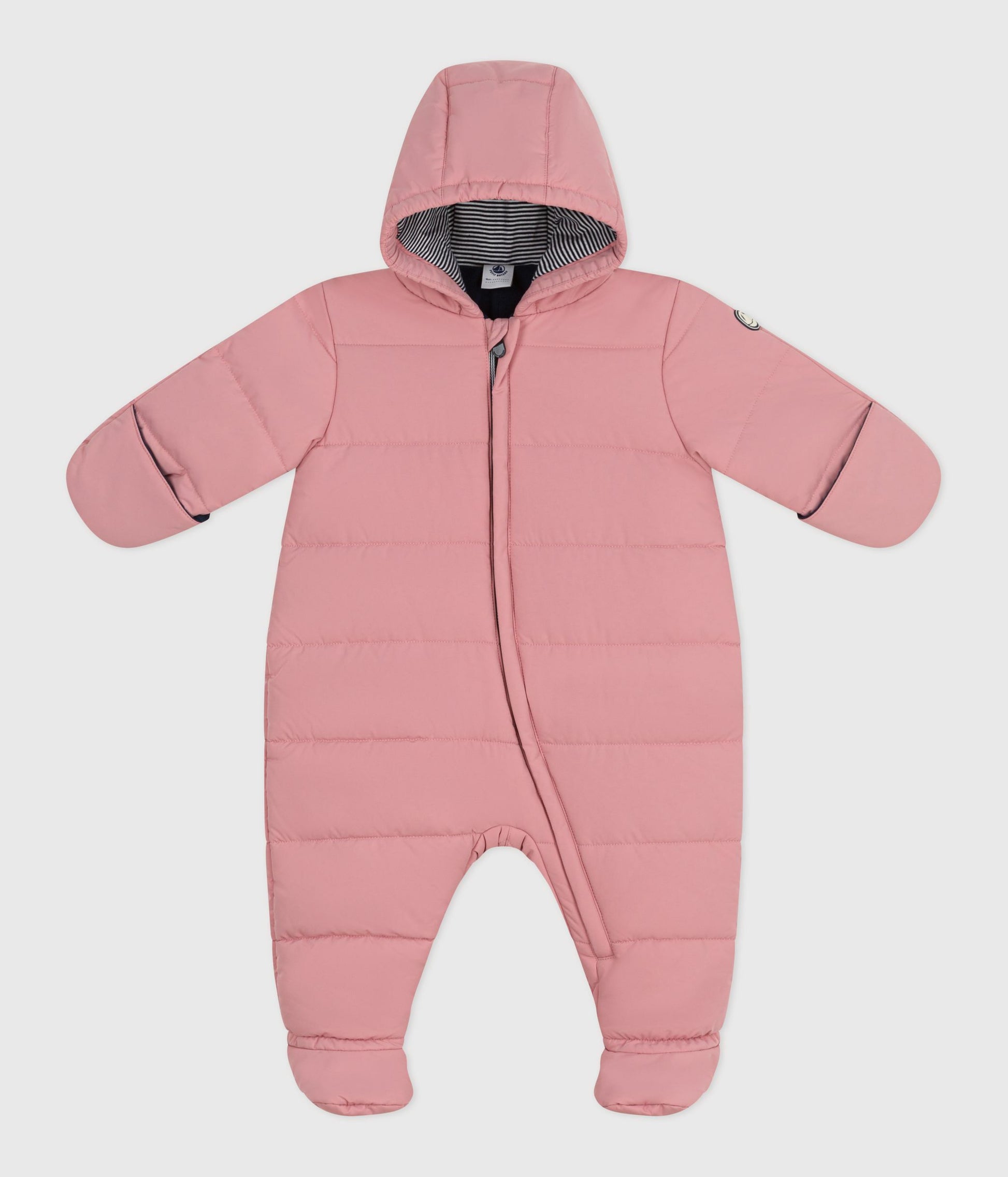 Snowsuit for girls or boys, made from polyester, a matt material ideal for wearing in the winter. The full-length zip is handy when you're getting your baby dressed. This model is footless for sizes 18 months and over. Item: Main fabric / Body lining / Padding 100%Polyester Sleeve lining 100%Polyamid Lining of the hood 100%Cotton Ref. No. A0EHI02000